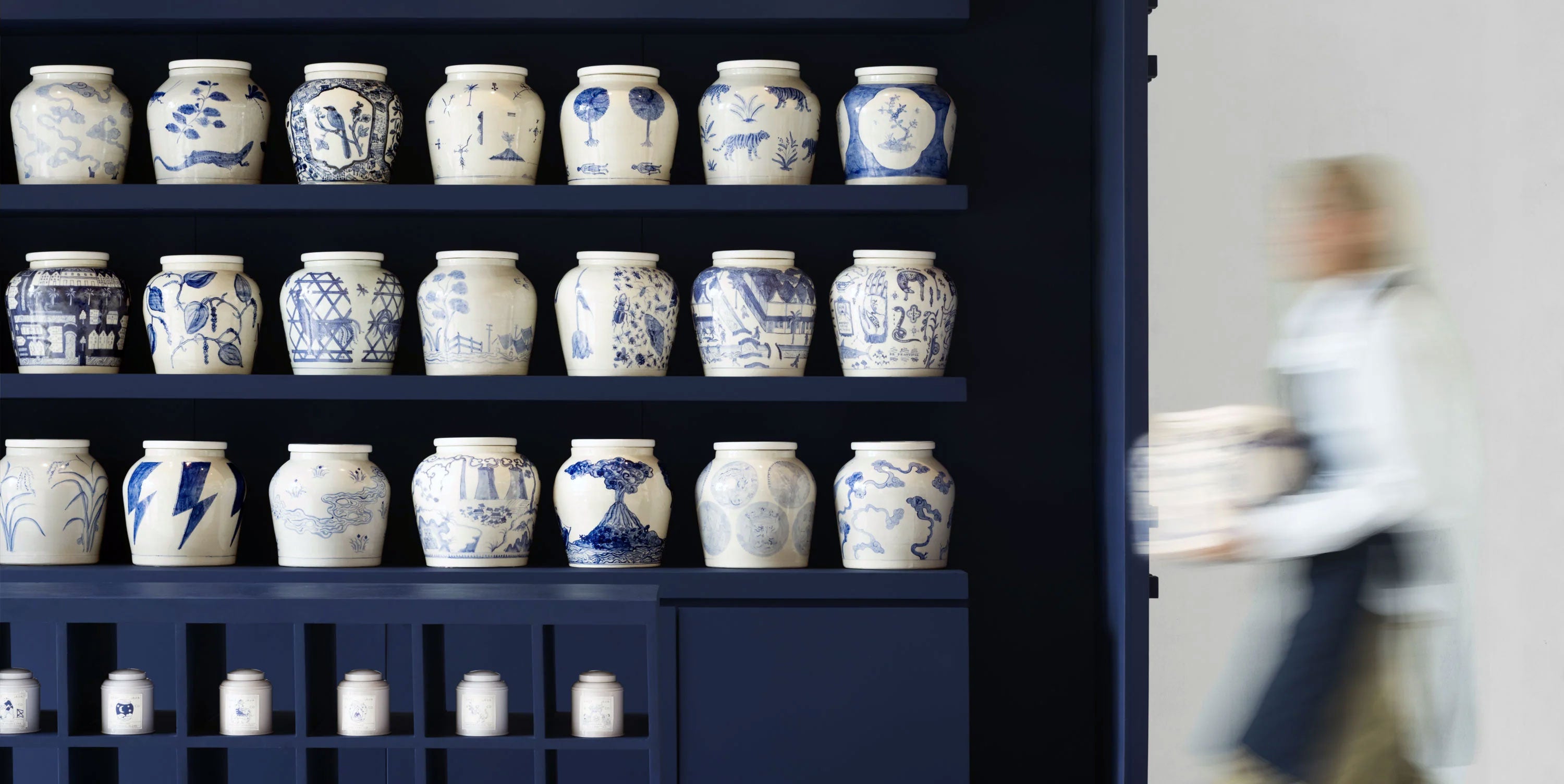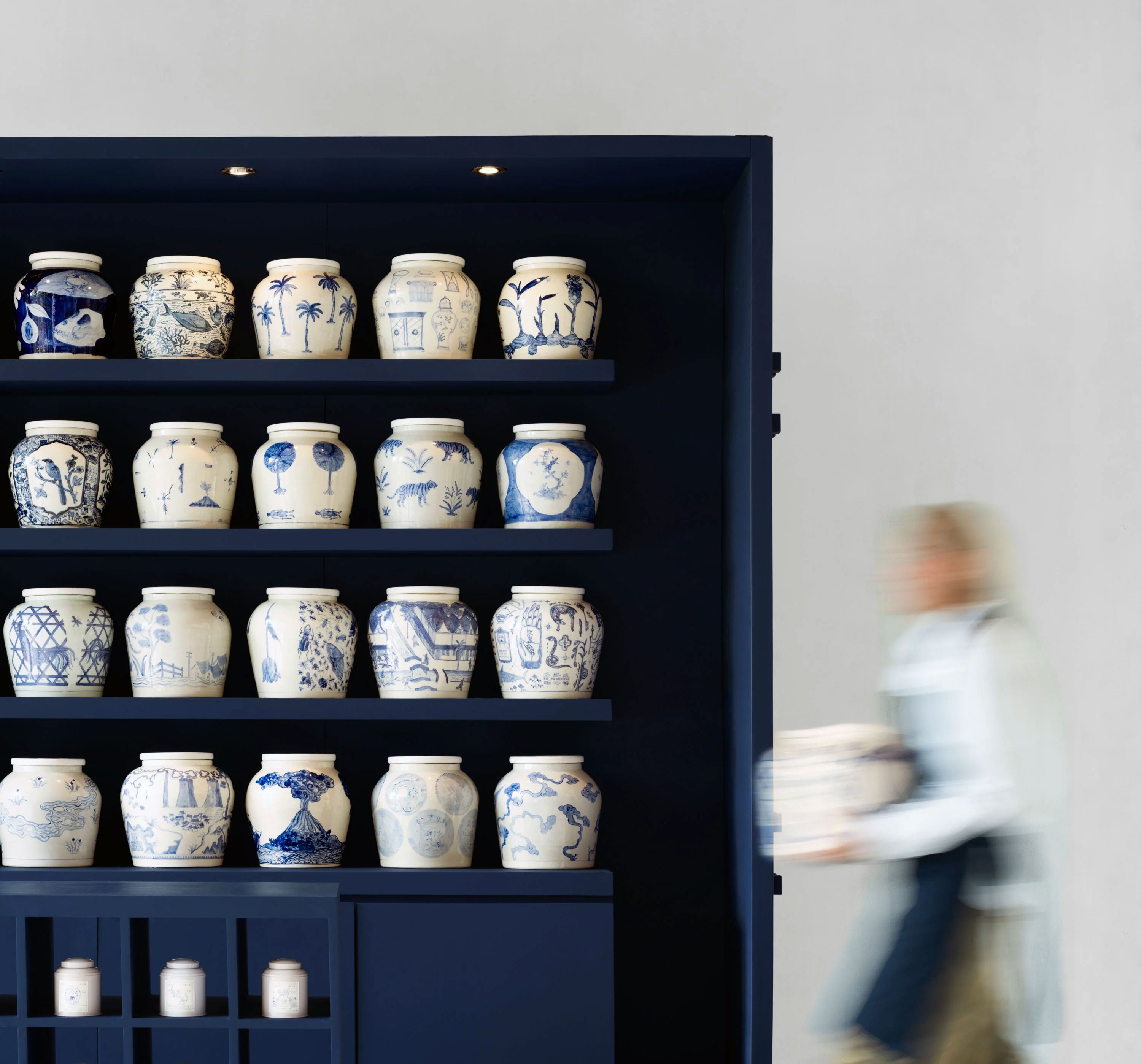 ShopOur blue & white cube box, filled with 15x premium natural cotton tea bags.